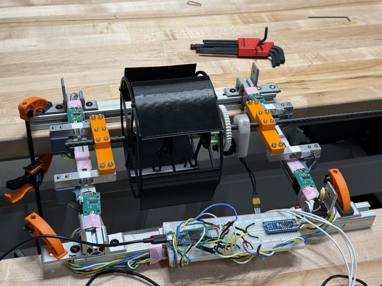 Our research revealed that airfoil selection and pitch control are critical to optimizing thrust generation in specific directions. To validate theoretical findings, I optimized existing airfoil shapes into a design that fit our fuselage, and tested these on a test stand with a load cell system for precise force measurements. The iterative process of researching cycloidal mechanics and selecting optimal airfoils formed the foundation for optimizing the cyclocopter’s directional thrust capabilities.